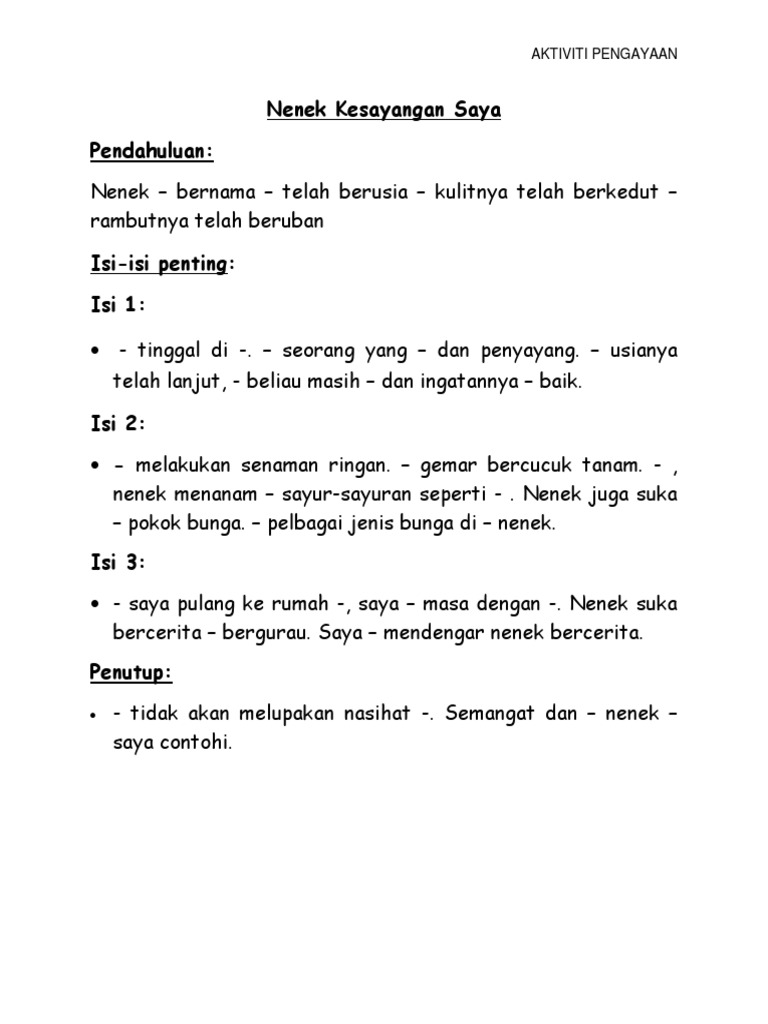 Mahu bertandang ke rumah nenek jika angsa kesayangan nenek itu. ١٠ ذو القعدة ١٤٤١ هـ. Contoh karangan spmtentang diri.